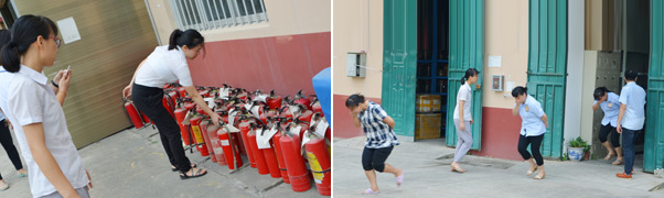 演練前消防設(shè)備清點                  在消防安全員的指揮下應(yīng)急疏散演練