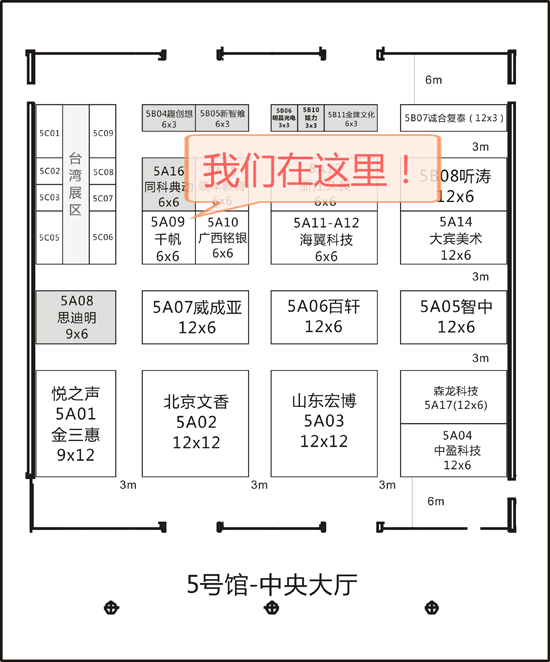 千帆展位號:5號廳5A09  千帆展位號如圖所示: